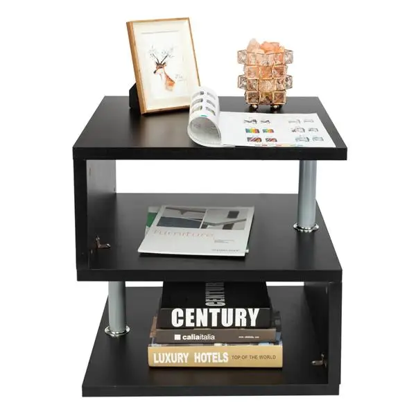 Review Top Modern Contemporary Multilevel S-Shaped Accent Table Black Nightstand Perfect for living rooms ent