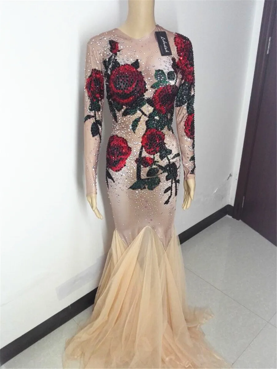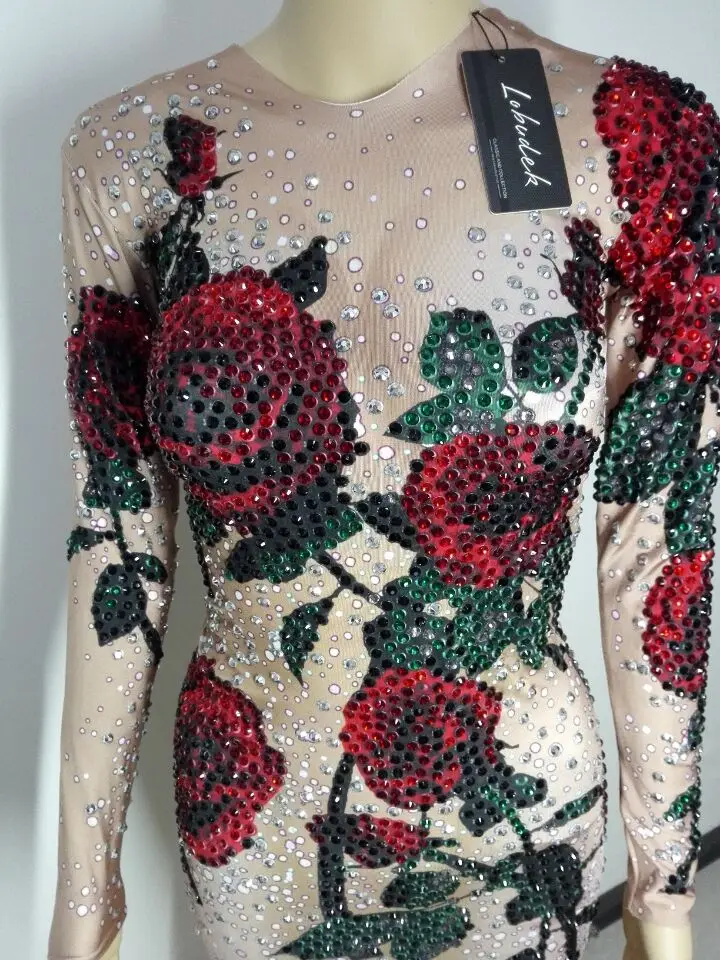 BEST SELLER Rose Flower Bright Crystals stone female costume dresses sexy for singer dancer nightclub Stag Part