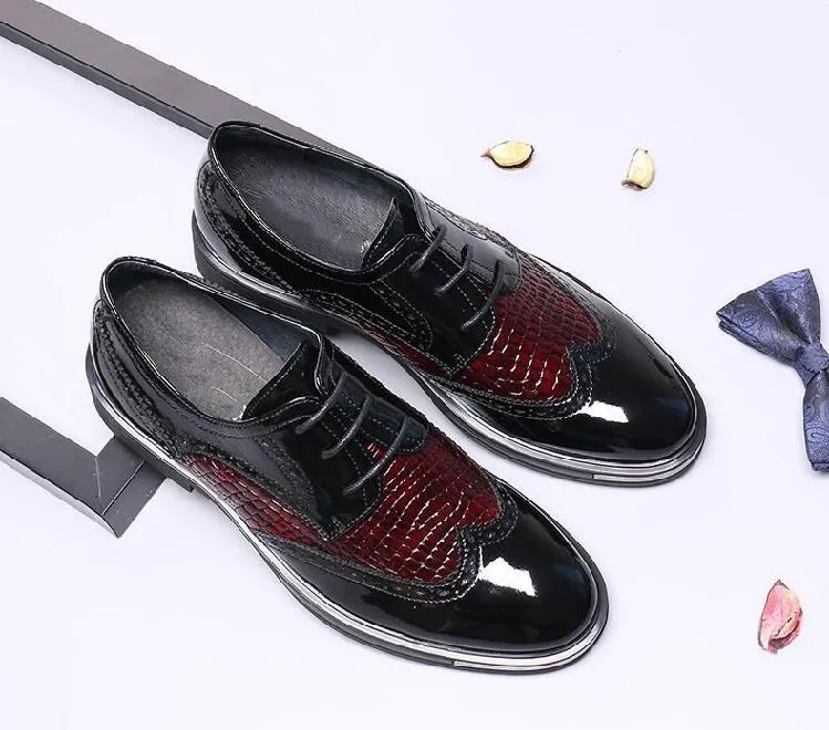 Carved brogue dress shoes men genuine leather stone pattern mix colour lace up breathable smart cas